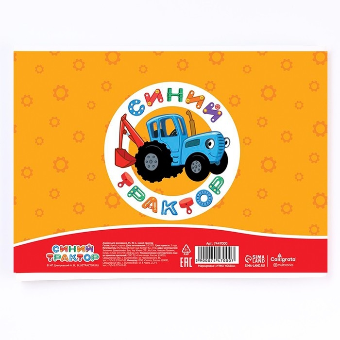 Альбом для рисования А4, 40 листов 100 г/м², на скрепке, Синий трактор