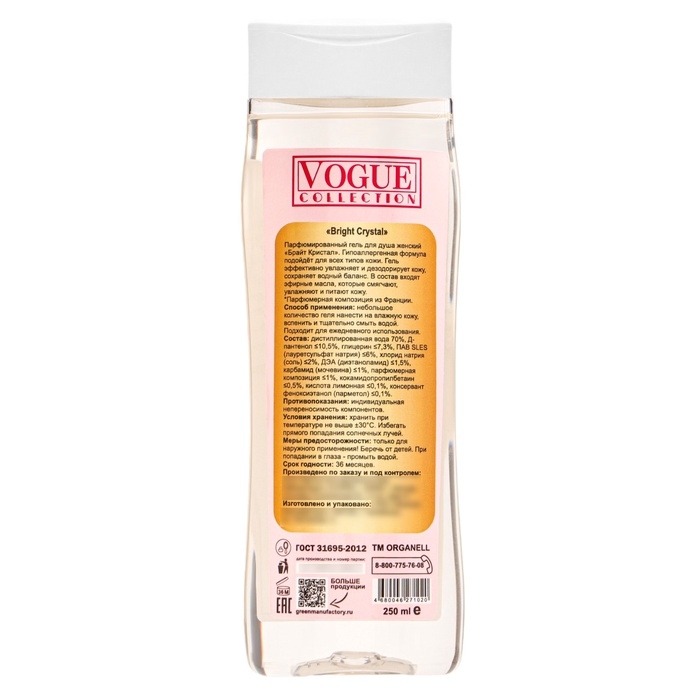 Женский гель для душа «Bright Crystal» обладает необычайной стойкостью аромата - оставит выразительный шлейф на 1 - 2 часа. Гипоаллергенная формула подойдёт для всех типов кожи. Гель эффективно увлажняет кожу, сохраняет водный баланс. В состав входят эфирные масла, которые смягчают и питают кожу.
