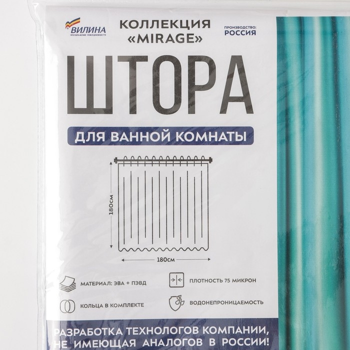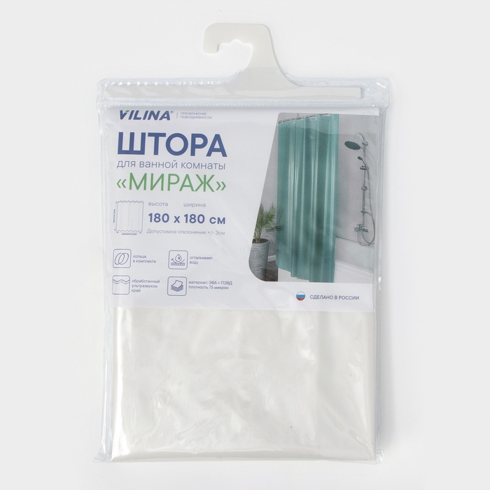 Штора Mirage не только защищает поверхности в ванной от брызг, но и создаёт уют. Данные модели созданы из качественного полиэтилена, что обеспечивает водонепроницаемость. Можно не беспокоиться о сухости пола или коврика.