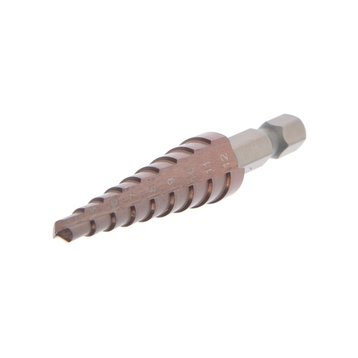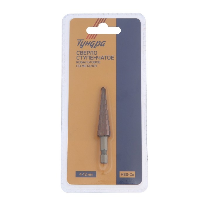 Сверло ступенчатое ТУНДРА, HSS-Co, шестигранный хвостовик, 4 - 12 мм