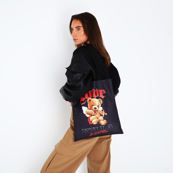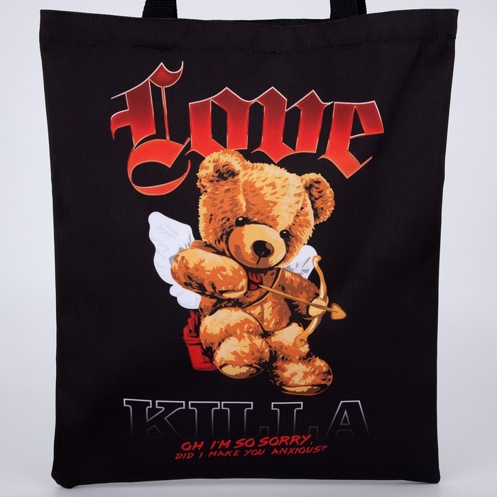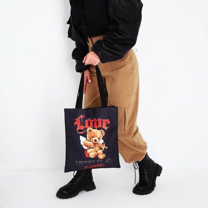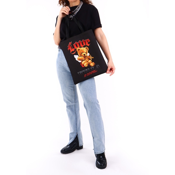Шопер "Мишка ангел" 35 х 0,5 х 40, отдел без молнии, без подклада, чёрный