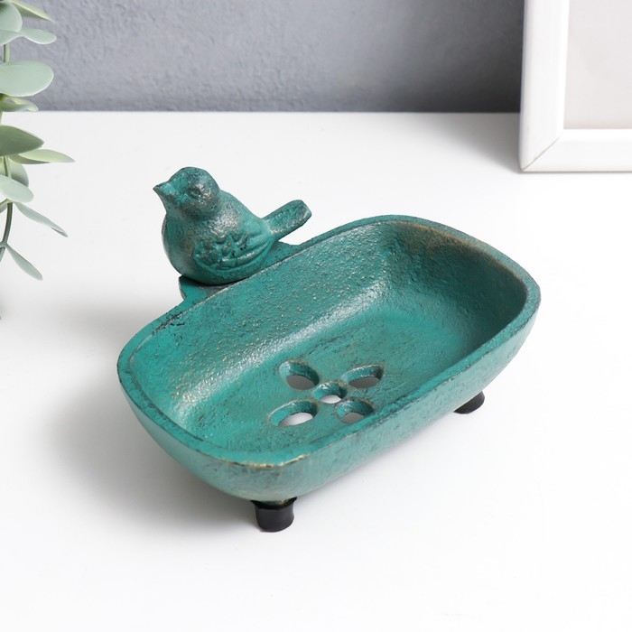 Сувенир чугун мыльница "Воробушек" патина 7,2х12,8х10 см