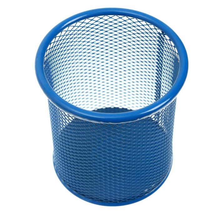 Стакан для пишущих принадлежностей круглый, металлическая сетка, синий
