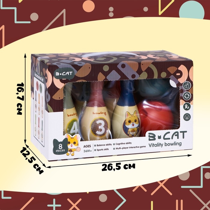 Боулинг «Котята», 6 кеглей 15×5 см, 2 шара, диаметр 8 см