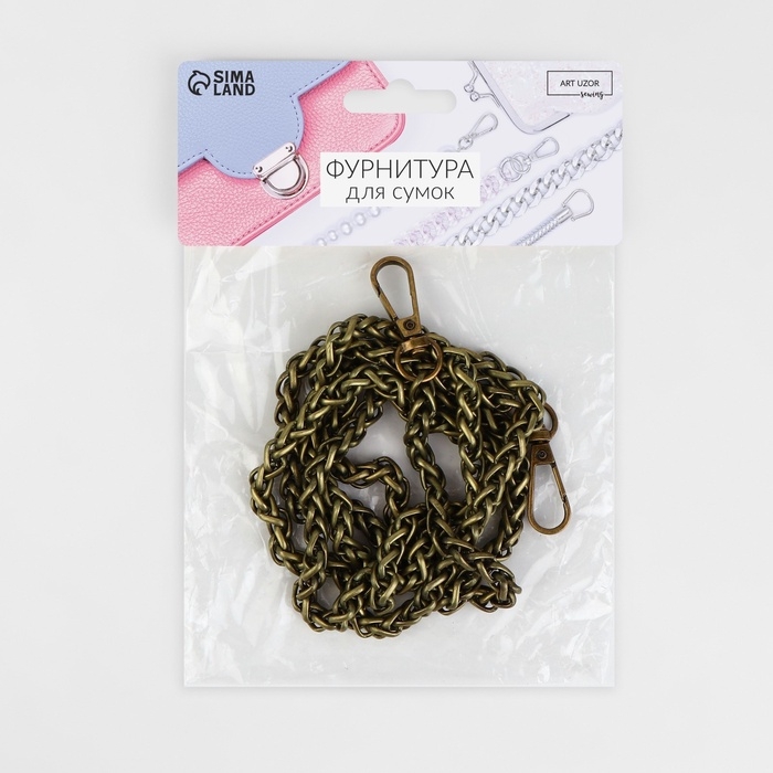 Цепочка для сумки, с карабинами, железная, 7 × 7 мм, 120 см, цвет бронзовый