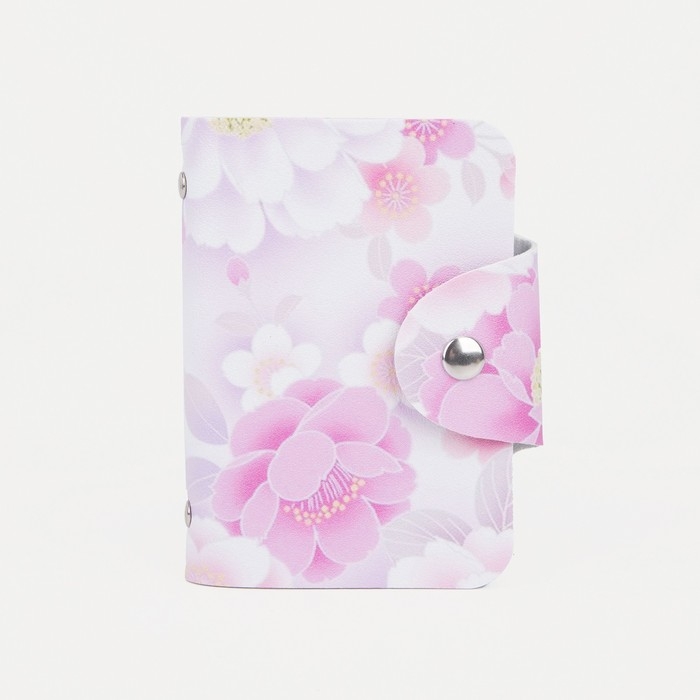 Визитница на кнопке, 24 карты, цвет белый/розовый