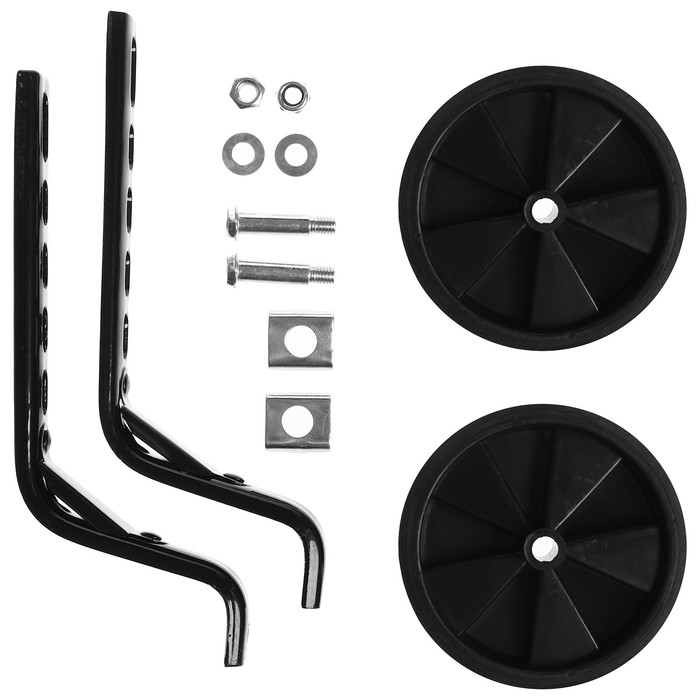 Дополнительные колёса помогают ребёнку на начальных этапах обучения, чтобы он смог без риска падения привыкнуть к детскому велосипеду. Универсальный кронштейн позволяет использовать их на моделях с задним переключателем.