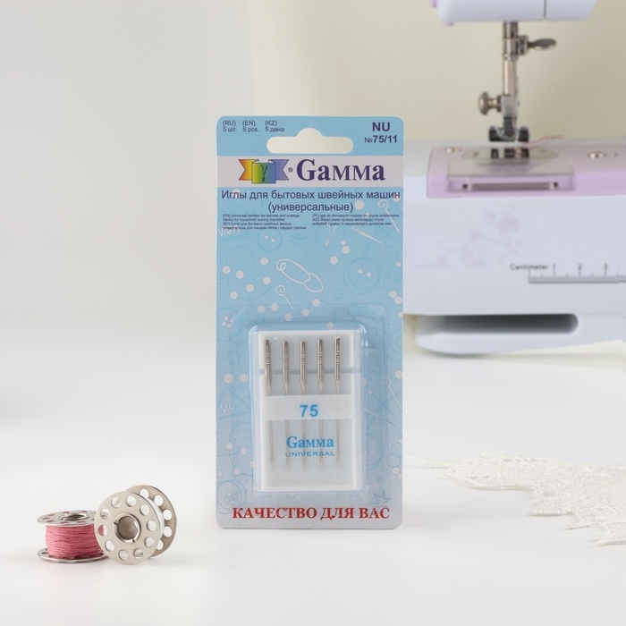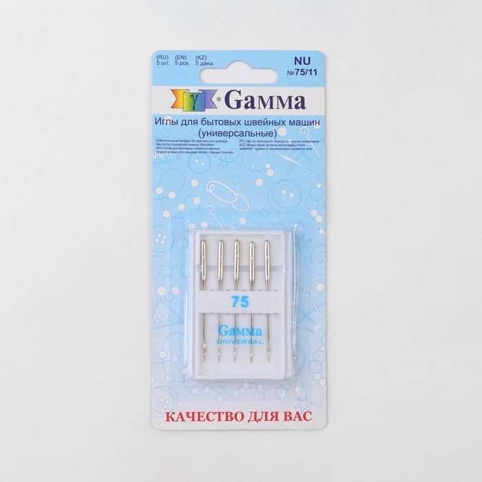 Иглы для бытовых швейных машин, универсальные, №75, 5 шт