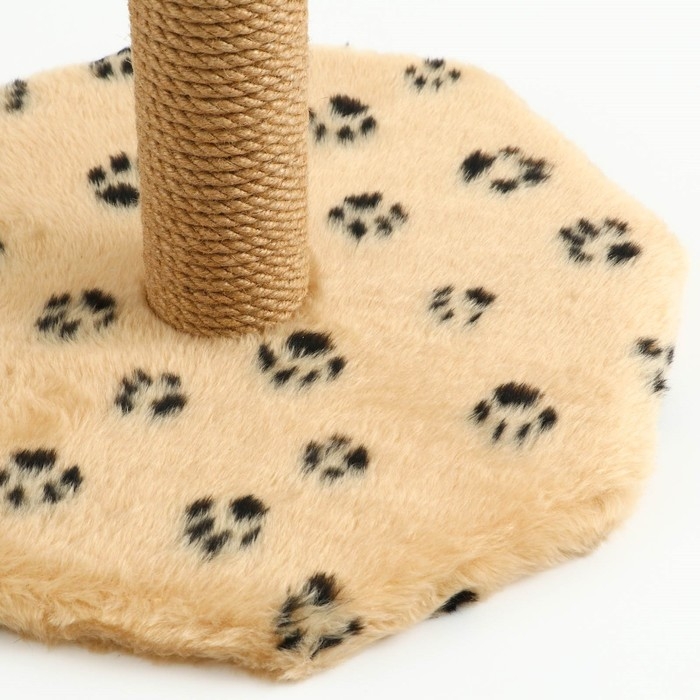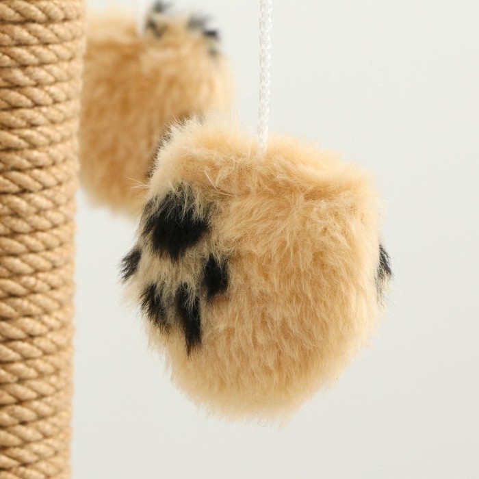 Когтеточка с тремя игрушками, 35 х 35 х 53 см, бежевая с черными лапками