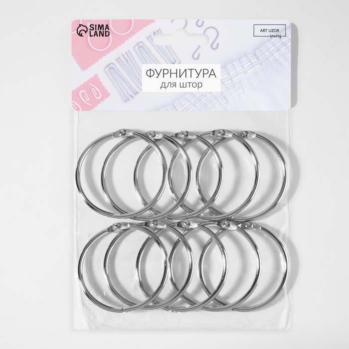 Кольцо для карниза, разъёмное, d = 45/51 мм, 10 шт, цвет серебряный
