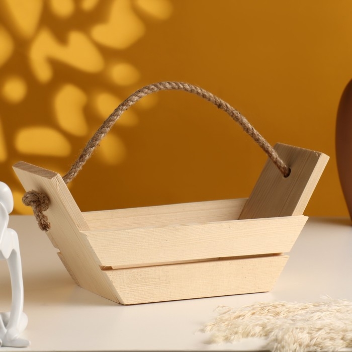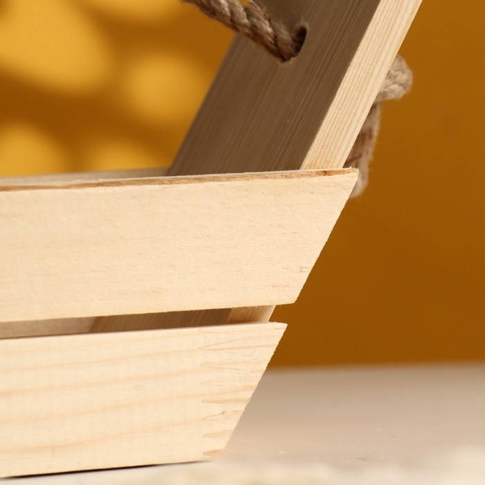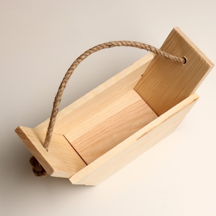 Кашпо деревянное двуреечное, ручка веревка 26,5х12,5х9,5 см натуральный