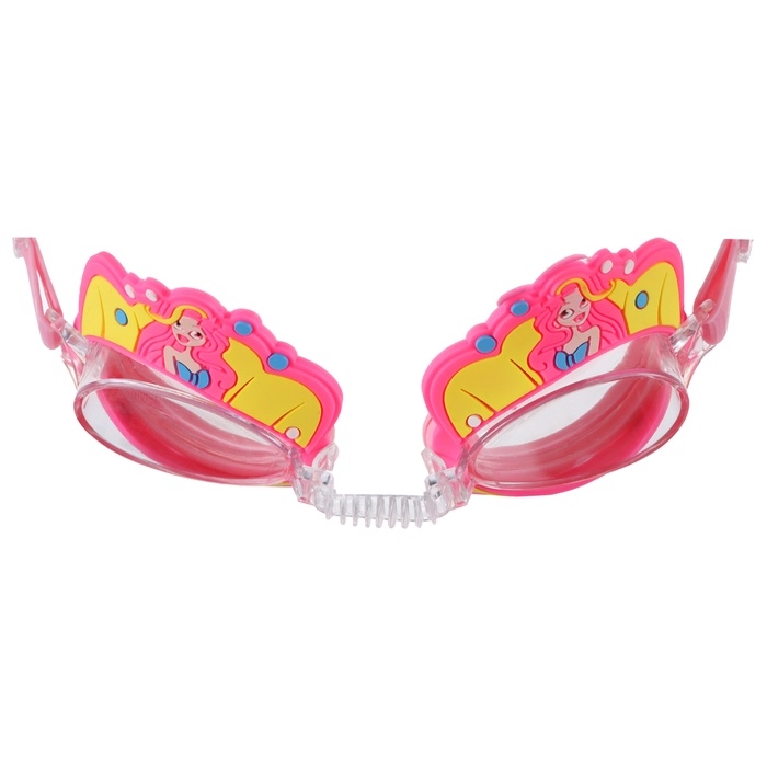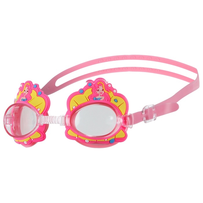 Линзы очков изготовлены из поликарбоната, имеют покрытие от УФ-излучения для защиты глаз ребёнка. Покрытие антифог защищает от запотевания очков. Мягкий и комфортный уплотнитель обеспечивает герметичность во время плавания. Ремешок регулируется под нужный обхват головы.