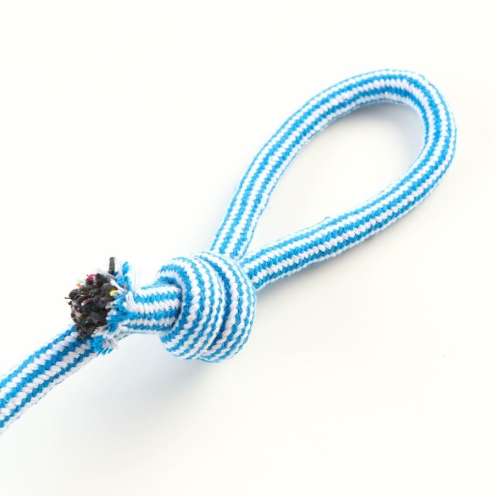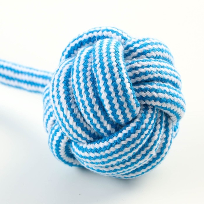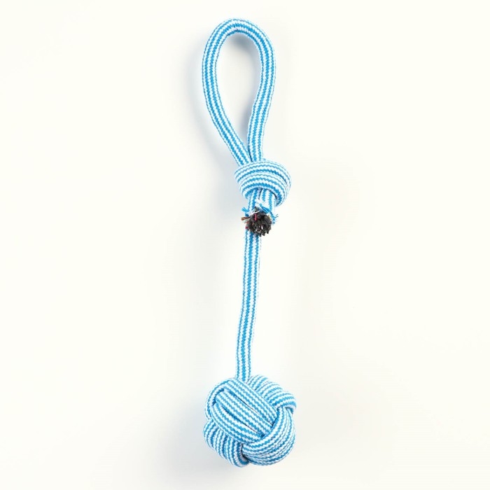 Игрушка-дразнилка для собак с шариком из каната, до 85 г, до 38 см, голубая/белая