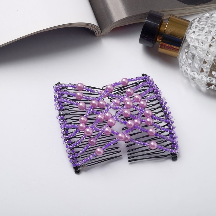 Зажим для волос "Сетка" бусины, 9,5 см, сиреневый