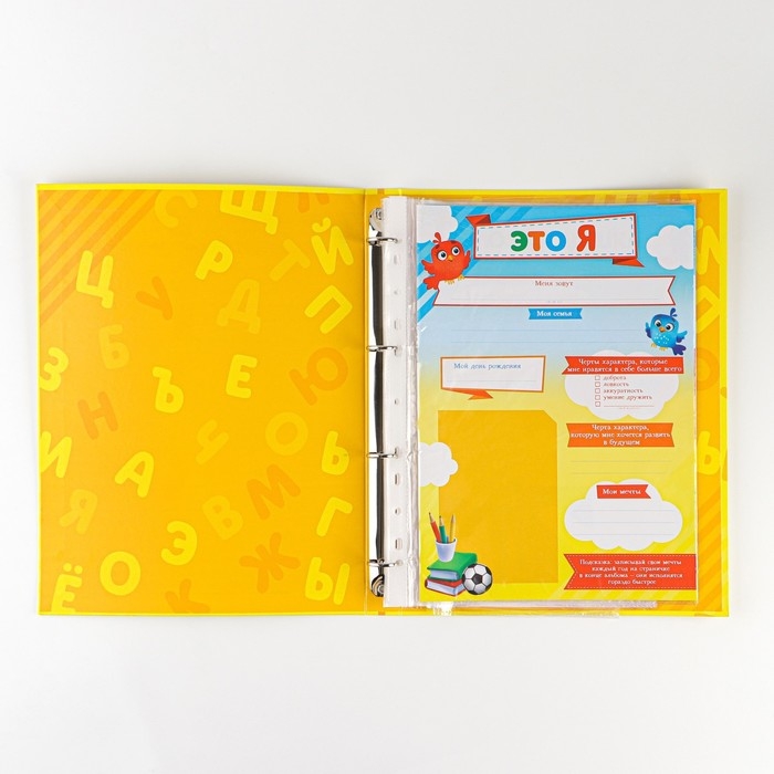 Папка-портфолио А4, Calligrata "Переменка", пластиковая, на 4 кольцах, для школьника, без вкладышей