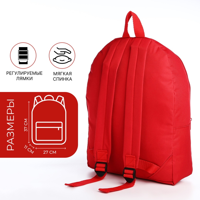 Рюкзак школьный на молнии молодёжный, наружный карман, цвет красный