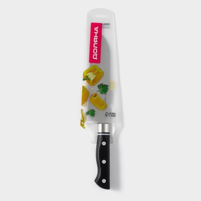 Нож Сантоку кухонный Доляна «Кронос», лезвие 17 см, цвет чёрный