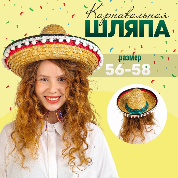 Карнавальная шляпа «Сомбреро» обхват головы — 56 см