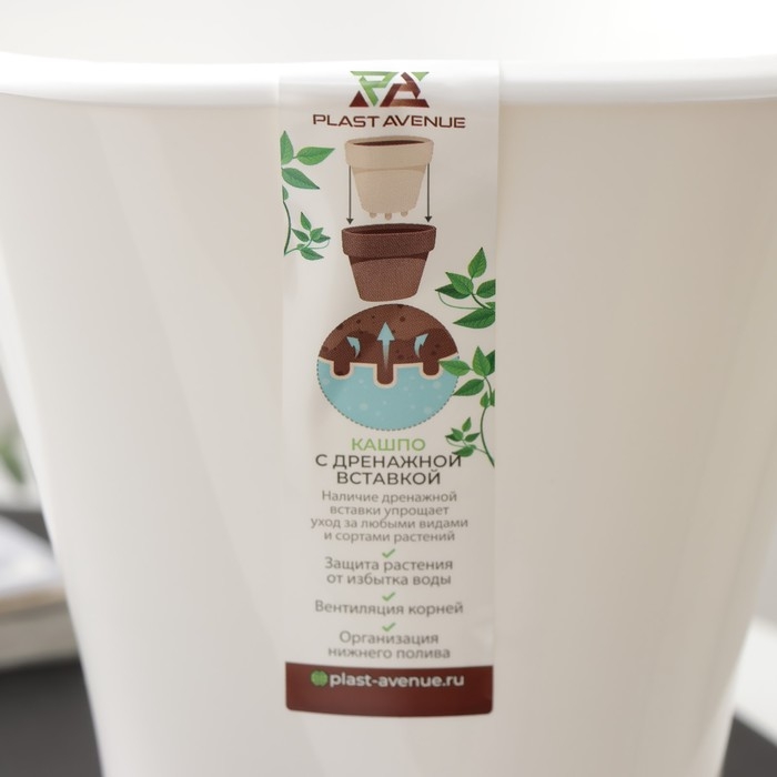 Кашпо для цветов со вставкой «Лагуна», 1,5 л, d=16 см, h=15 см, белое