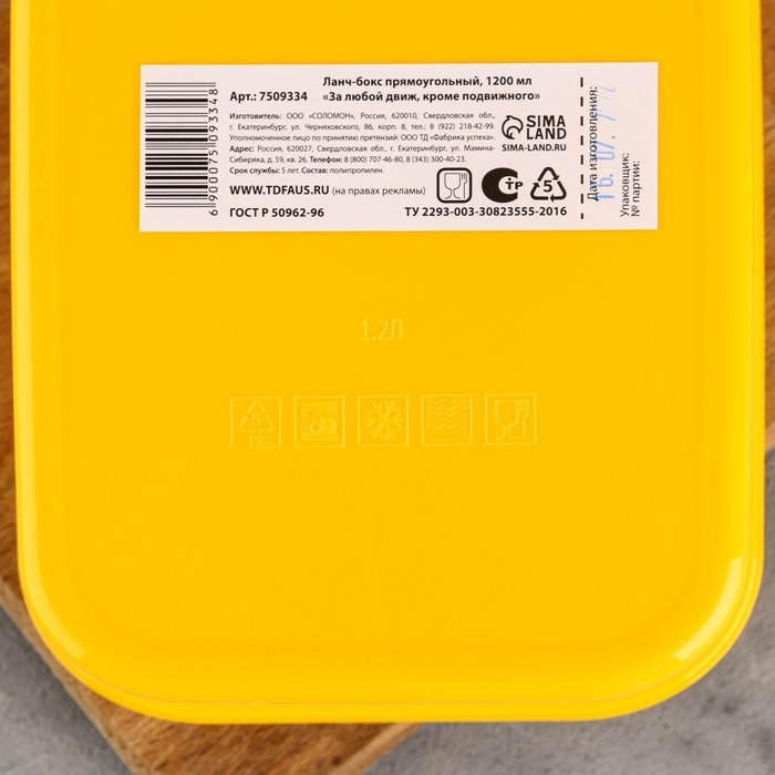 Ланч-бокс прямоугольный «За любой движ, кроме подвижного», 1200 мл