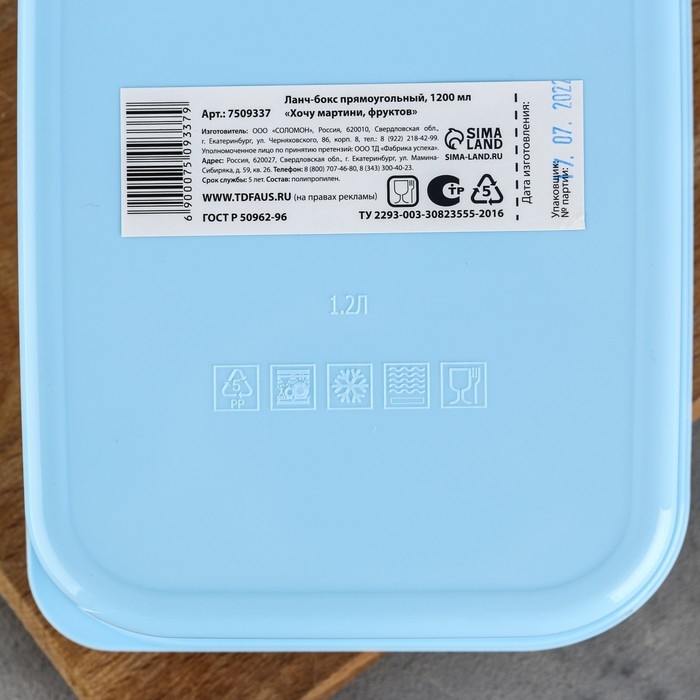 Ланч-бокс прямоугольный «Хочу мартини фруктов», 1200 мл
