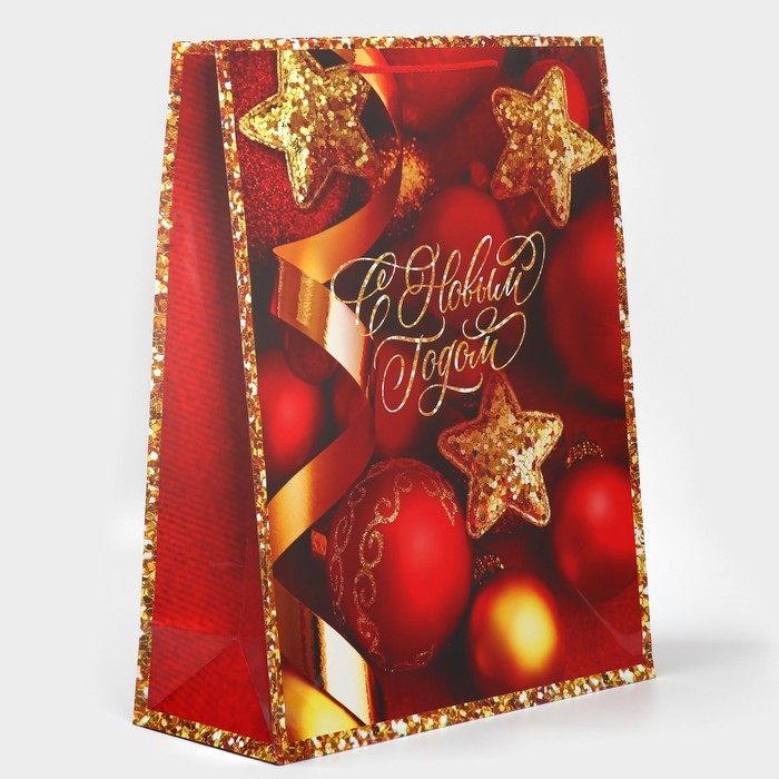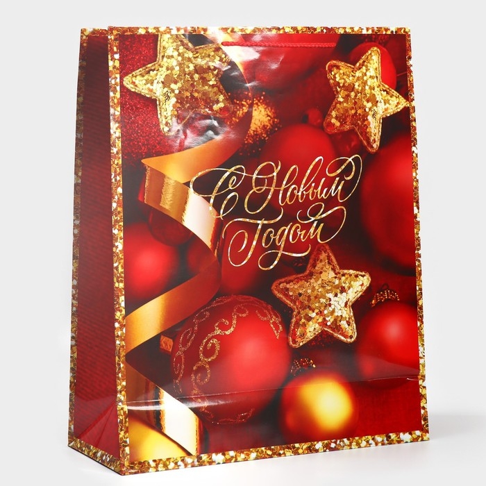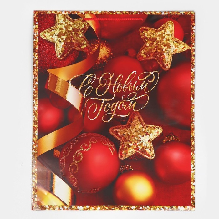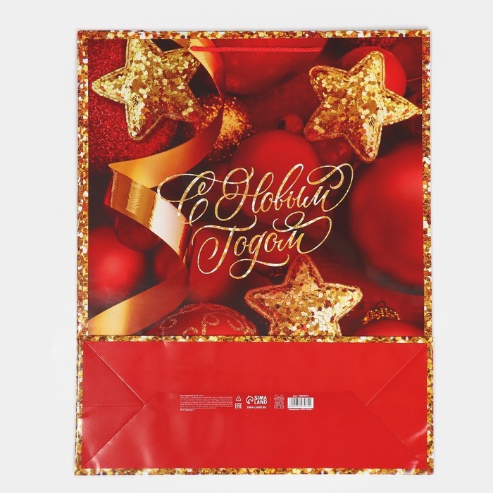 Пакет подарочный новогодний ламинированный XL «Новогодние звезды», 40 х 49 х 15 см