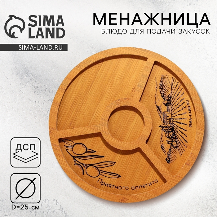 Менажница деревянная «Приятного аппетита», 25 см