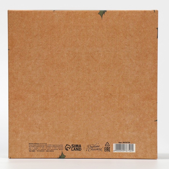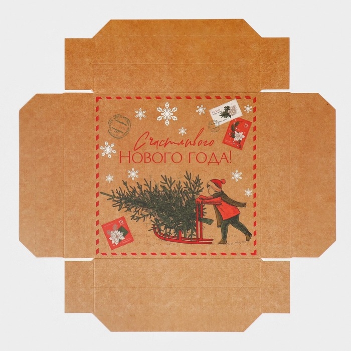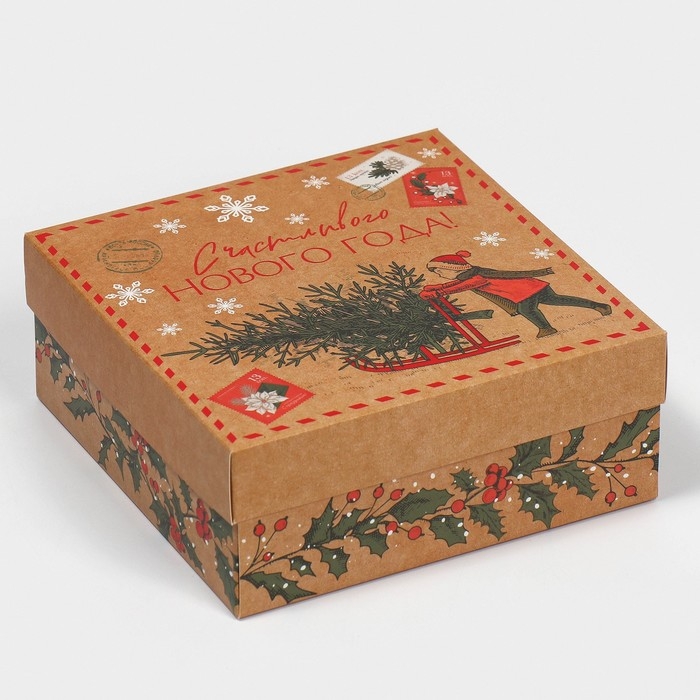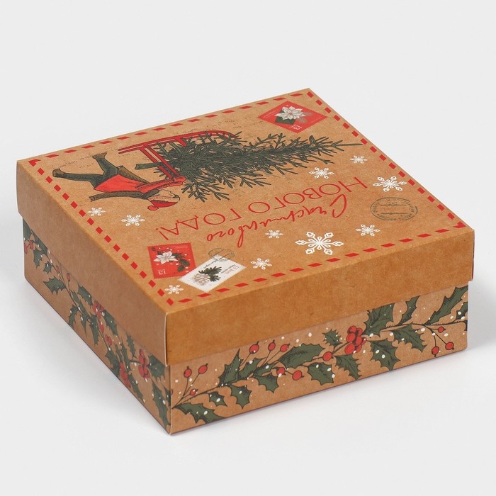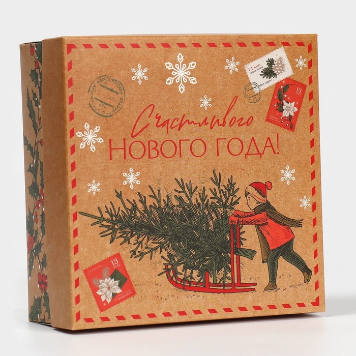 Коробка новогодняя складная «Новогодняя почта», 17 х 17 х 7 см, Новый год