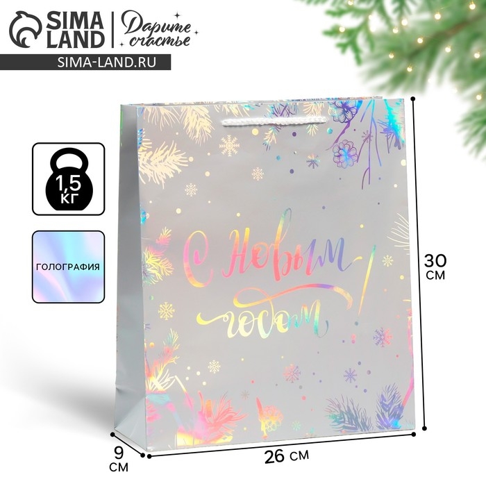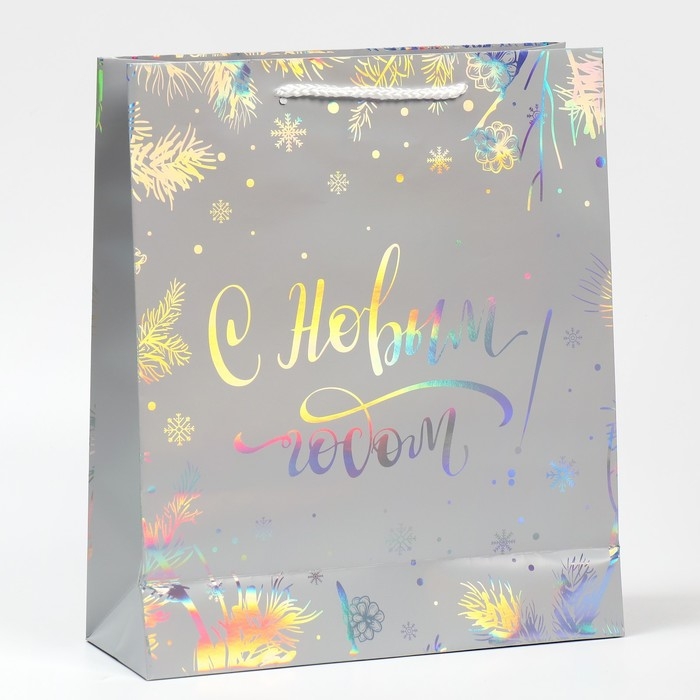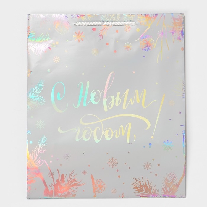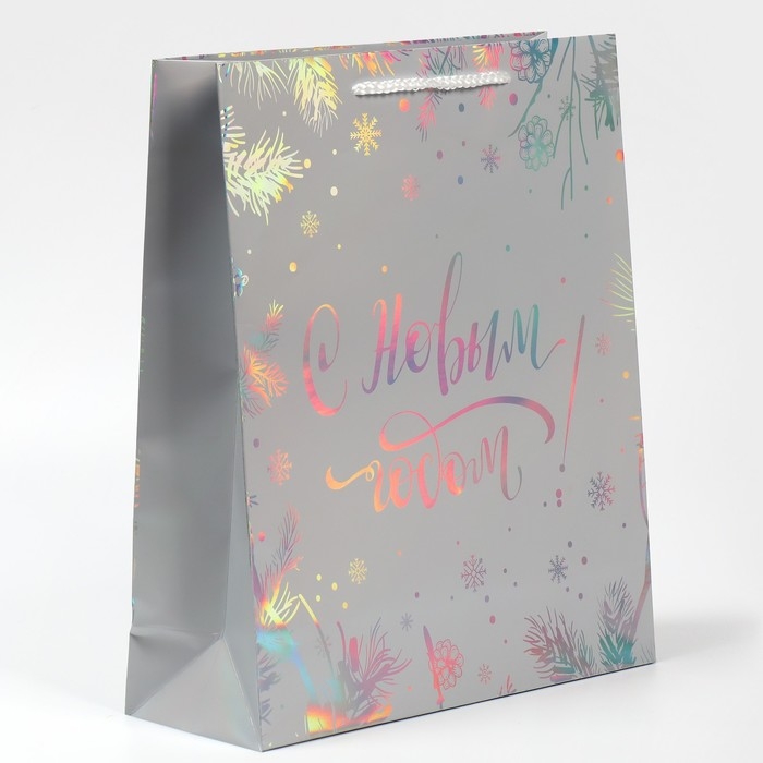 Пакет голографический вертикальный «Яркого Нового Года», 26 х 30 х 9 см