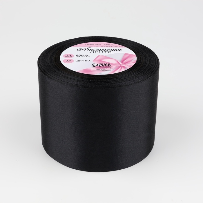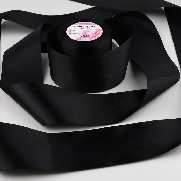 Лента атласная, 75 мм × 23 ± 1 м, цвет чёрный №39