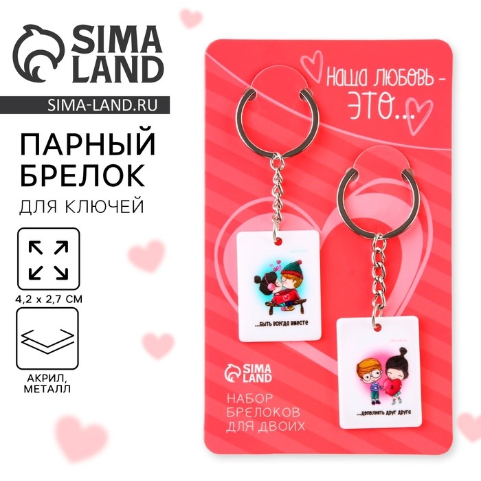 Брелок для ключей парный «Наша любовь это...», акриловый, 13,3 х 8