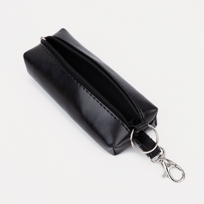 Ключница на молнии, длина 13 см, кольцо, карабин, цвет чёрный