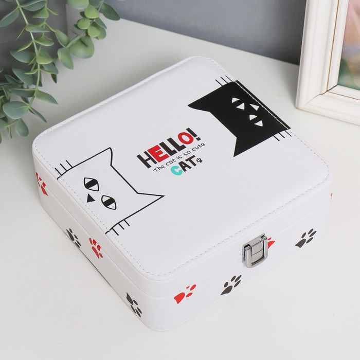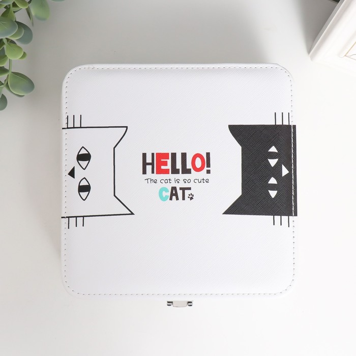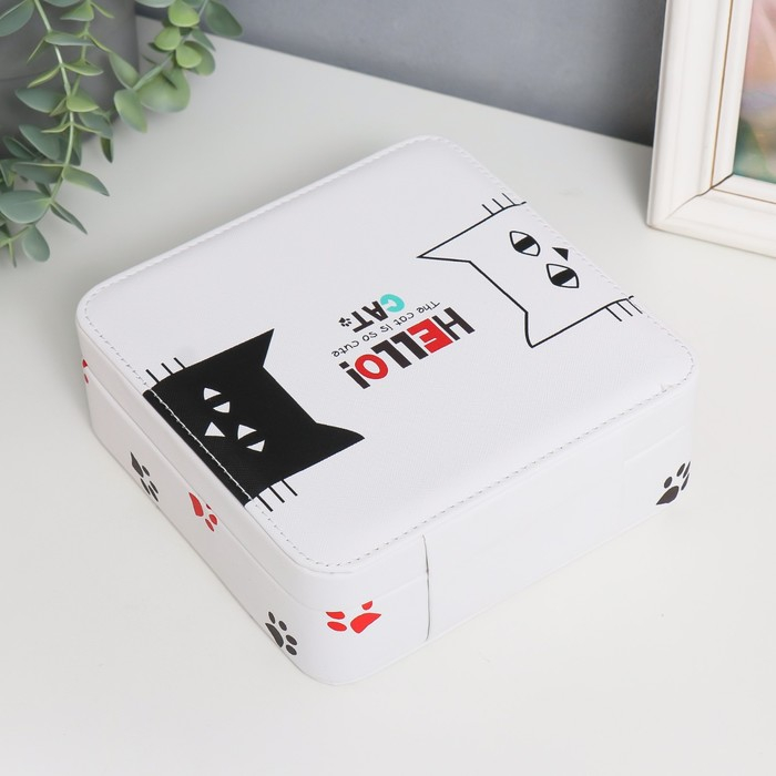 Шкатулка кожзам для украшений "Чёрный и белый кот" 6,5х18х18 см