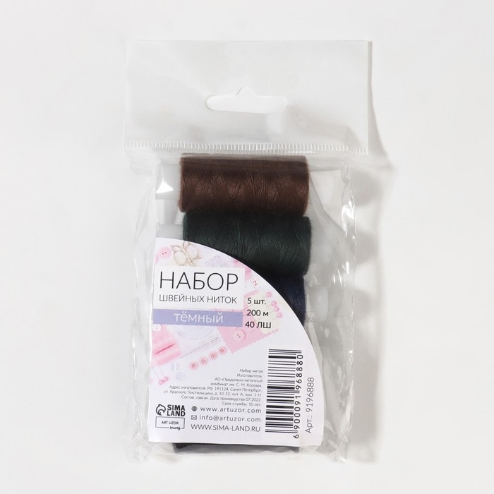 Набор ниток «Тёмный», 40ЛШ, 200 м, 5 шт, цвет разноцветный