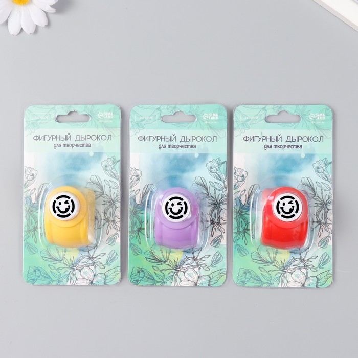 Дырокол фигурный "Хитрый смайлик" d=1,5 см МИКС 3х4х3,5 см