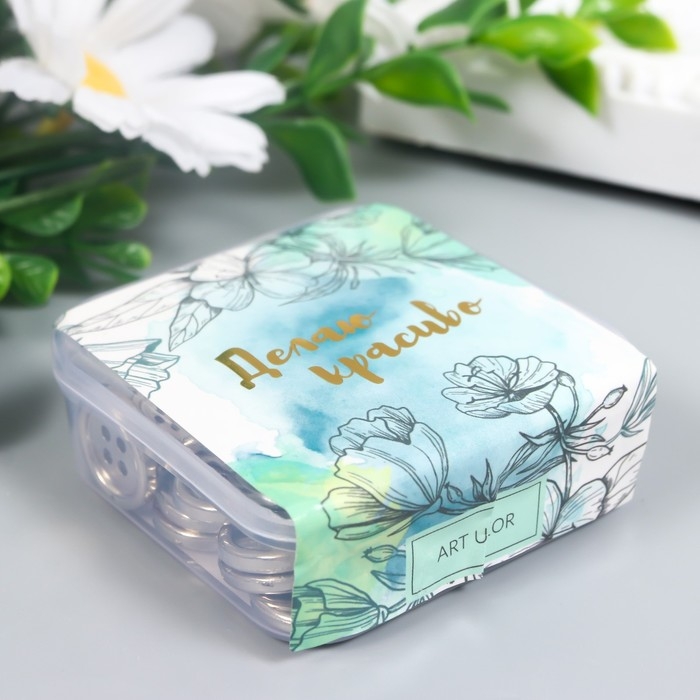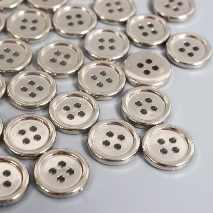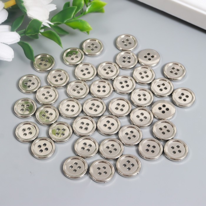 Пуговицы пластик 4 прокола "Серебро" 1,5х1,5 см набор 40 шт 2х5,5х5,5 см