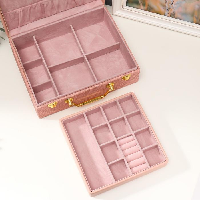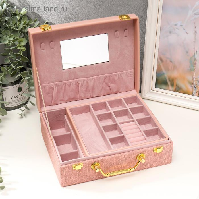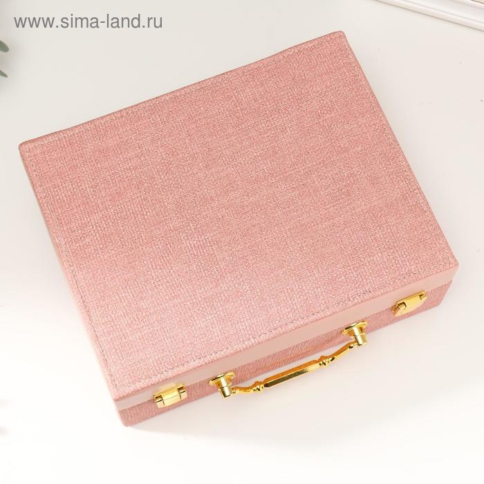 Шкатулка кожзам для украшений "Розовая" комбинированная чемодан 8х18х23 см