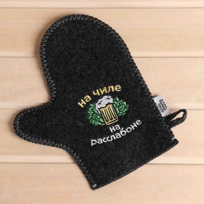 Рукавица для бани с вышивкой "На чиле, на расслабоне" серая