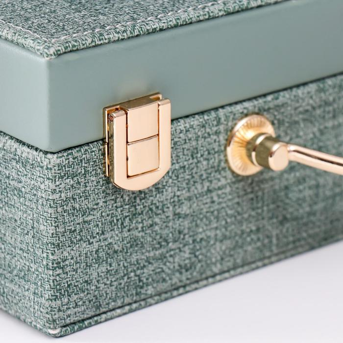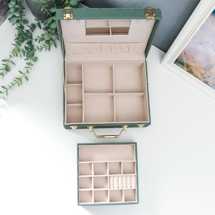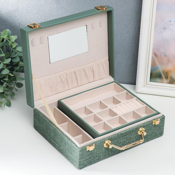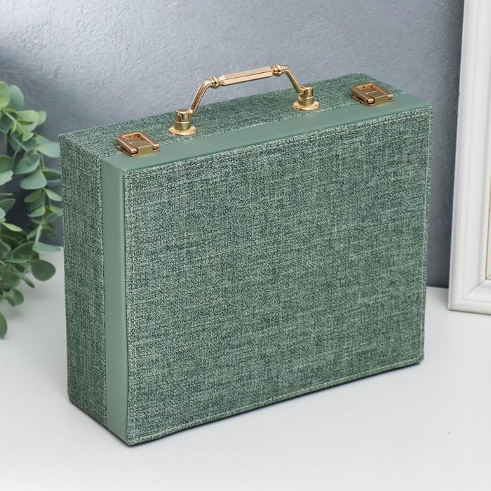 Шкатулка кожзам для украшений "Зелёная" комбинированная чемодан 8х18х23 см