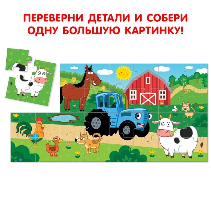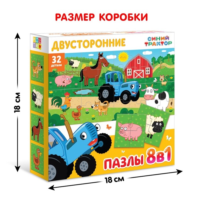 Пазлы 8 в 1 «Синий трактор на ферме», двусторонние, 32 детали