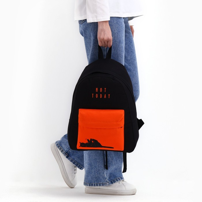 Рюкзак школьный молодёжный, отдел на молнии, наружный карман, цвет чёрный/оранжевый