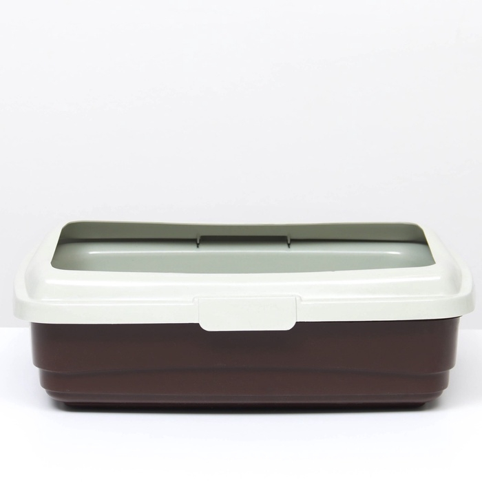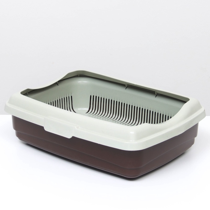 Пластиковый лоток для кошек с бортами удобен в использовании. Борт крепится защелками.
