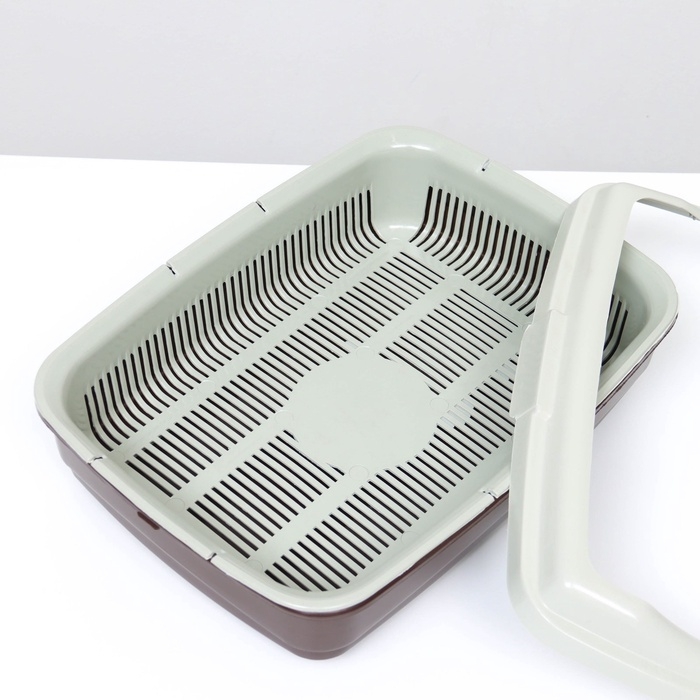 Лоток для кошек с высоким бортом и сеткой - это туалет в котором наполнитель не разбрасывается и пол остается чистым.
