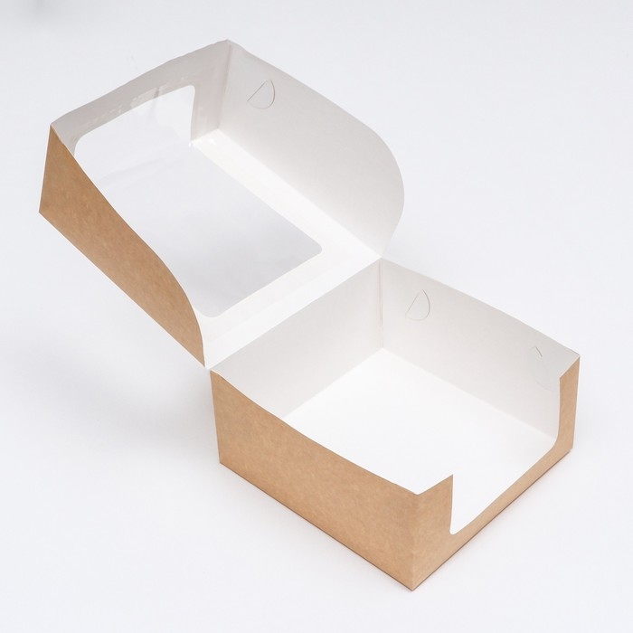 Кондитерская упаковка с окном, крафт, 21 х 21 х 10 см