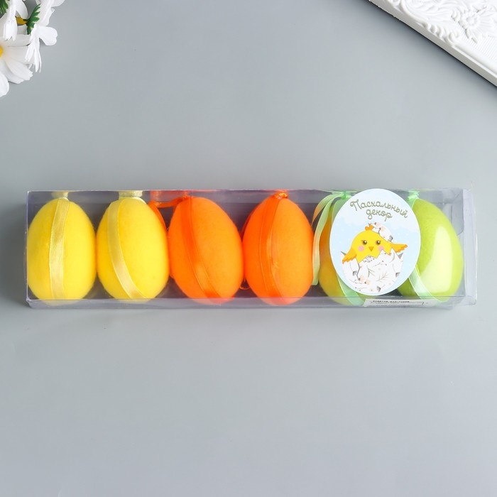 Декор пасхальный подвеска "Яйцо с ворсом" набор 6 шт разноцветные 4х4х6 см