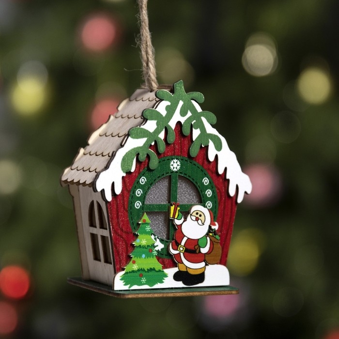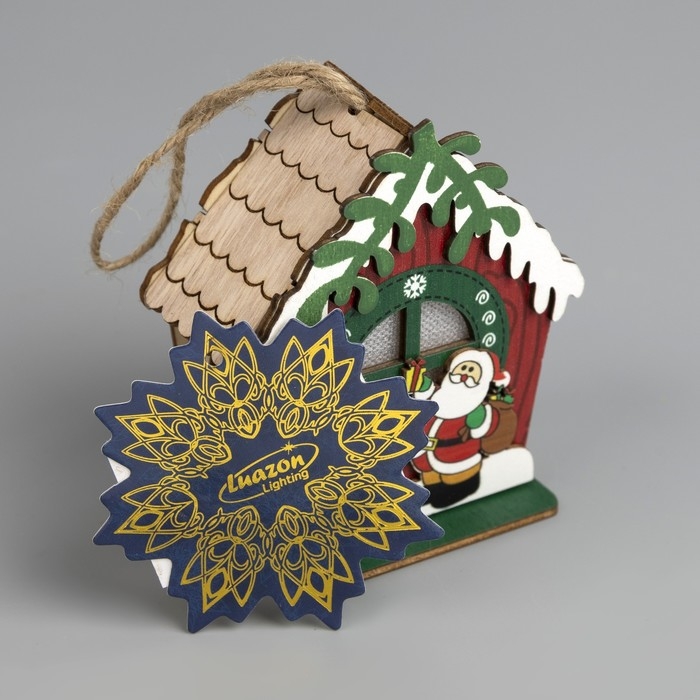 Ёлочная игрушка «Избушка Санты», от батареек, свечение тёплое белое