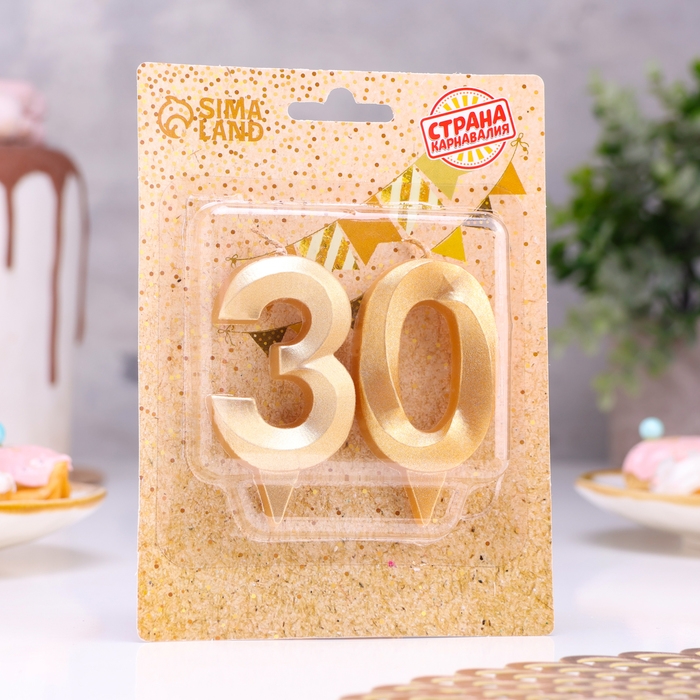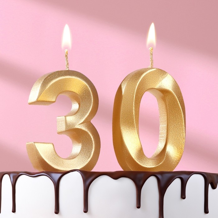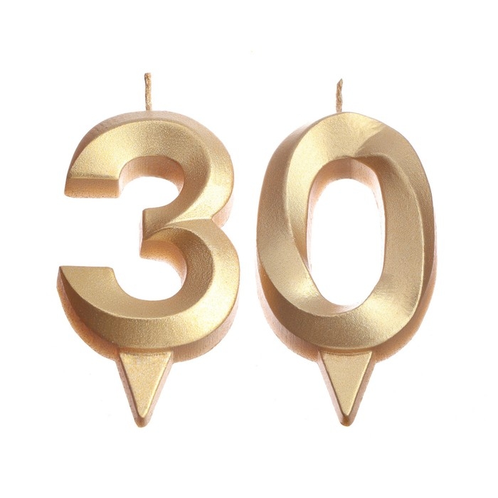 Свеча в торт юбилейная "Грань" (набор 2 в 1), цифра 30, золотой металлик, 6,5 см