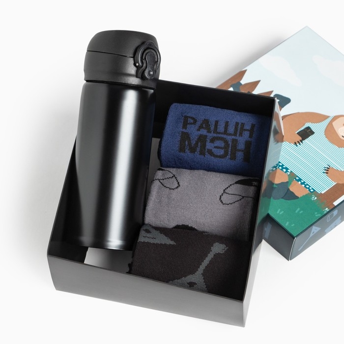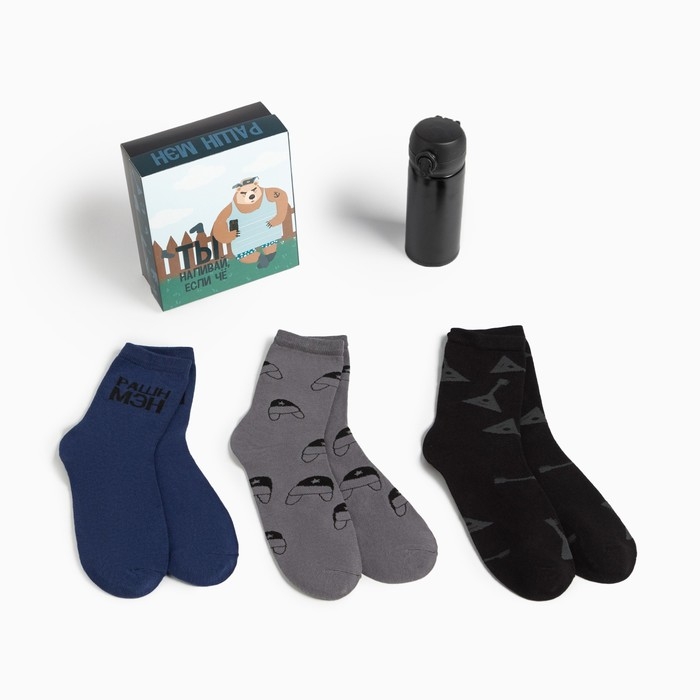 Подарочный набор термос и носки 3 пары KAFTAN "Если че", размер 41-44 (27-29 см)