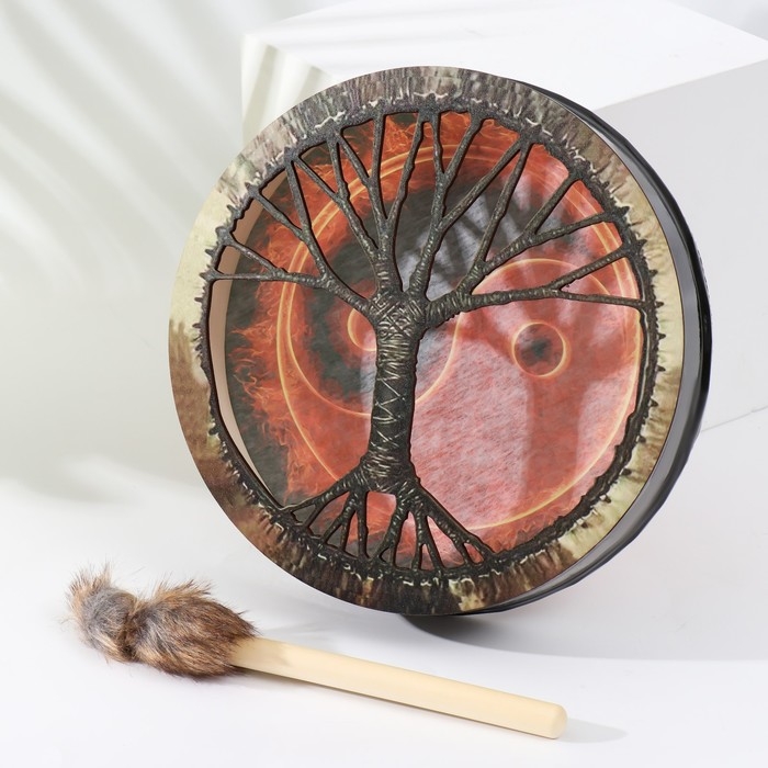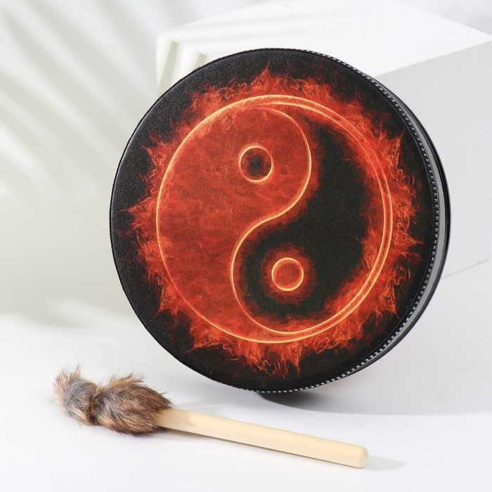 Шаманский бубен "Инь-ян и огонь" с колотушкой 5х25х25 см