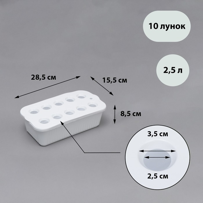 Ящик для выращивания зелёного лука, 29 × 16 × 8,5 см, 2,5 л, 10 лунок, пластик, белый, Greengo